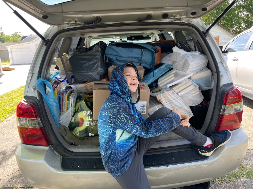 It was then 5:30pm.. the Habitat for Humanity Restore in the next shopping center towards home was open until 6:00pm… let’s go! That mad dash and search yielded two bags of books. I remembered a Goodwill that was a few miles down the road toward home, and that yielded a couple more bags of books.
